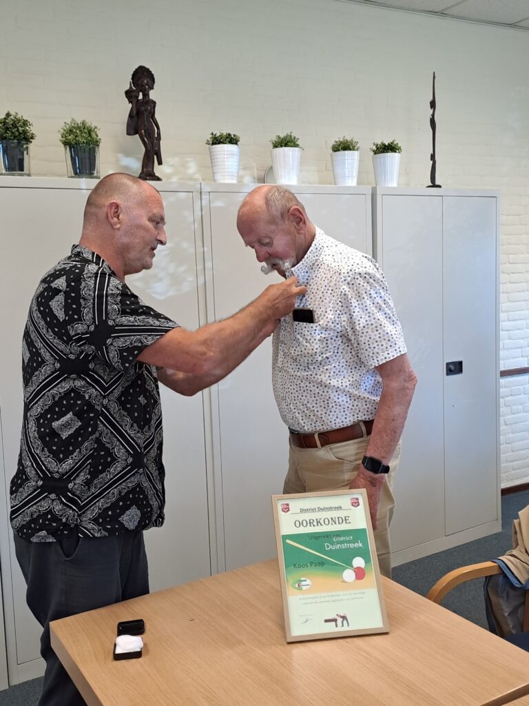 In Assen zijn de Nederlandse Kampioenschappen Libre voor de p.k. dagcompetitie gespeeld. Namens Duinstreek (CRBB) hadden ‘we’ drie ijzers in het vuur. Hink Derks van de Bogaert moest met de vierde plaats genoegen nemen in de 3de Klasse. Piet van Duivenvoorde (‘Duif’) van Sport moest met 160 te maken caramboles opboksen tegen een drietal 110 spelers en werd 3de in de 1ste klasse. Rob Harthoorn (’t KAB) won alle drie de partijen en is hiermee de enige Nederlandse Kampioen.